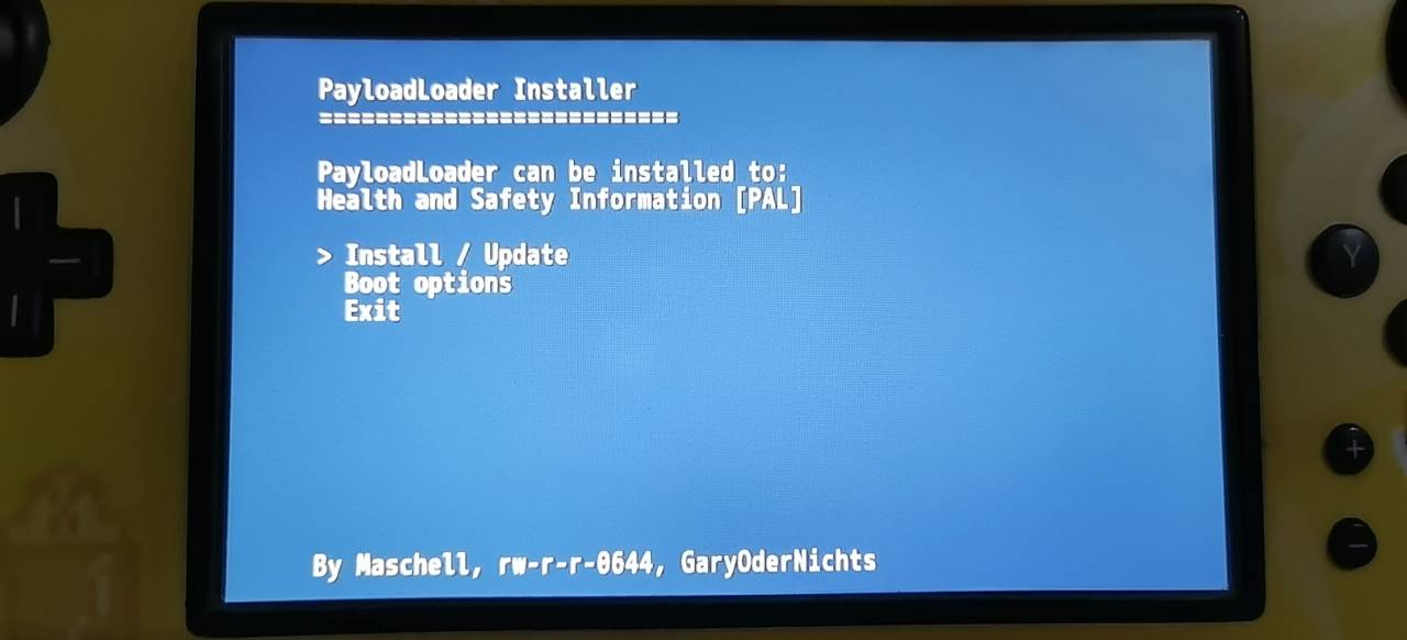 - 这时你应该能成功进入Environment Loader选单(黑色界面如下),如果卡死请强制重启之后继续尝试.