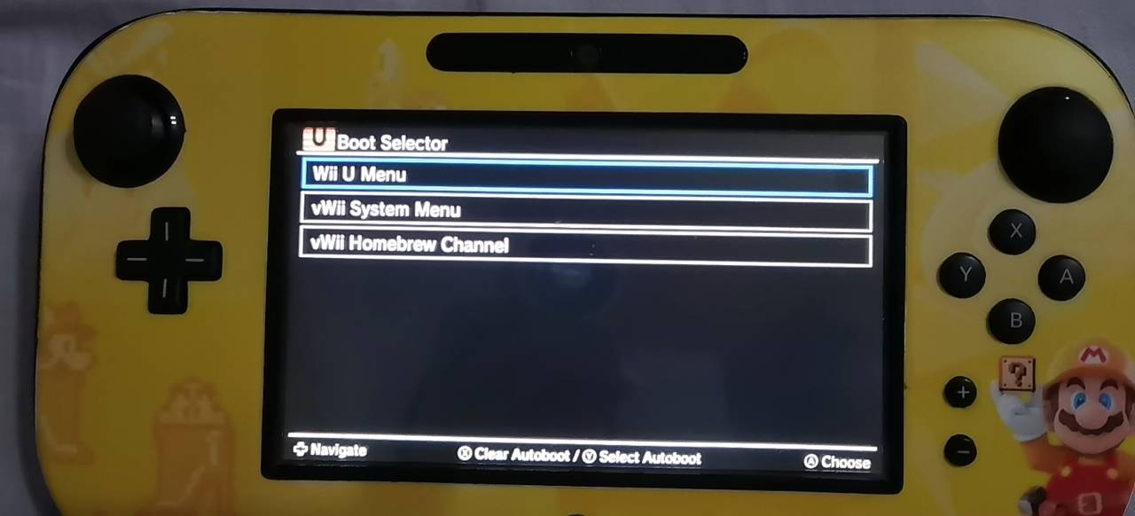 17.再次开启机器后应该会直接进入到如下界面,请移动到Wii U Menu选项后先按Y后按A.